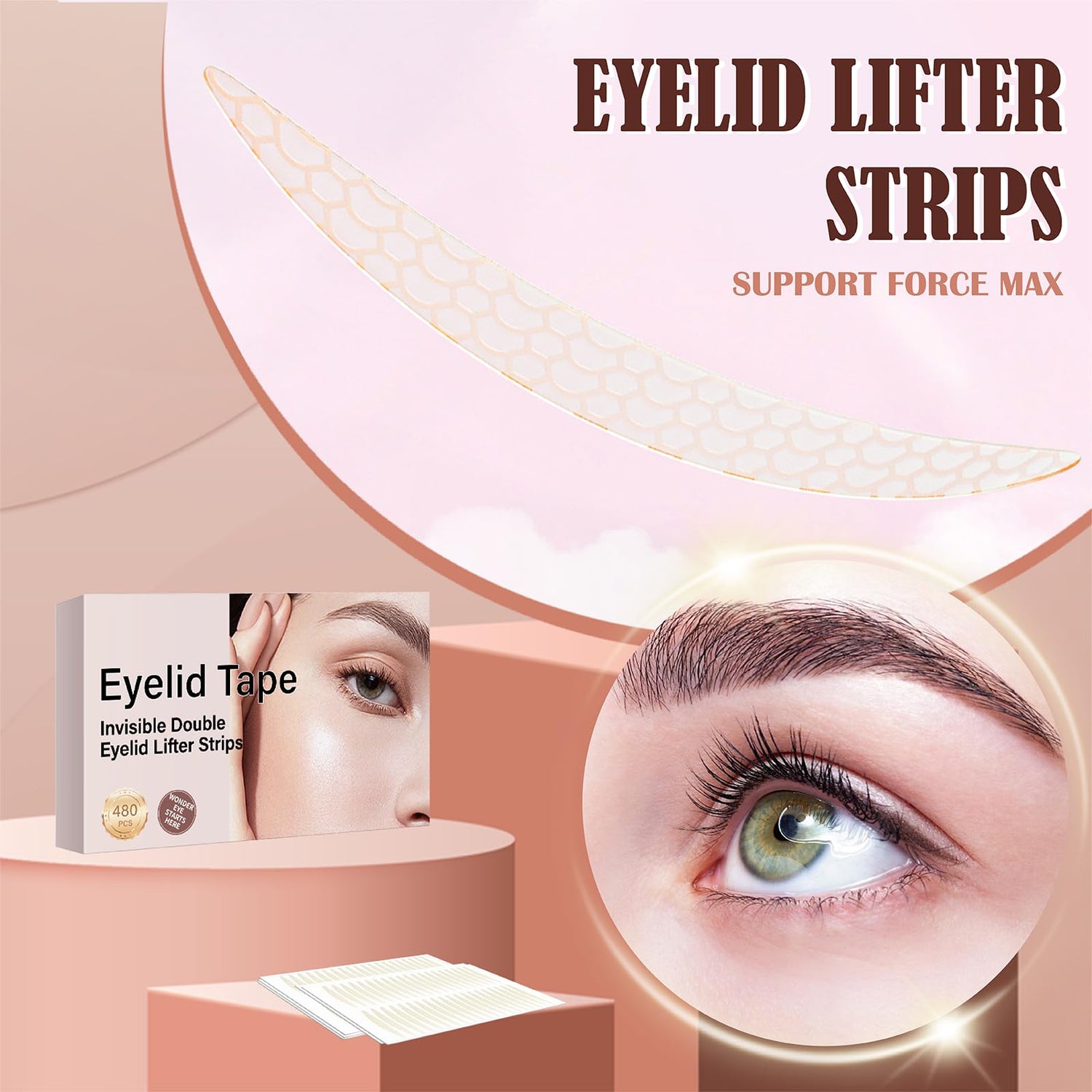 480Count Eyelid Tape, Eyelid Lifter Strips, Eyelid Tape for Hooded Eyes Invisible, Instant Surgery-Free Eye Lift for Uneven or Single Eyelids, Say Goodbye to the Hood, Sagging Eyelids