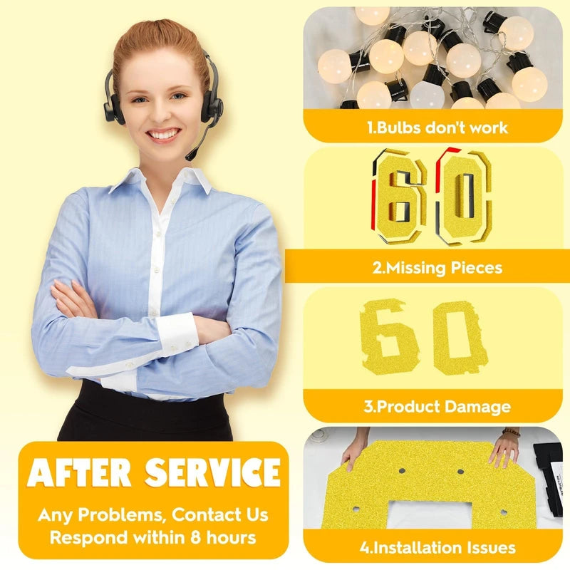 - String Lights with Warm Light: Our marquee number 60 kit features a string of warm light bulbs that add a soft, inviting glow to your party decor. The warm light creates a cozy and celebratory atmosphere, perfect for any occasion. The included lights are easy to install and distribute evenly within the frame, ensuring your marquee number shines brightly.