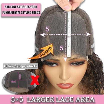 - Bob Wig Human Hair: The main highlight of this curly human hair wig is the lace part, which adopts HD lace to make 5×5 hd lace closure wigs human hair look closer to the scalp. No need to cut lace saving you a lot of time