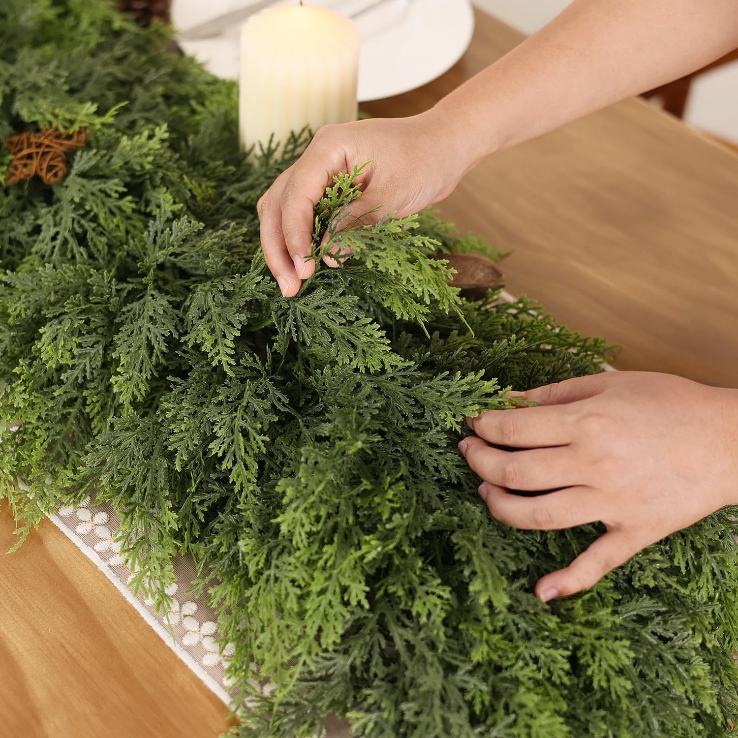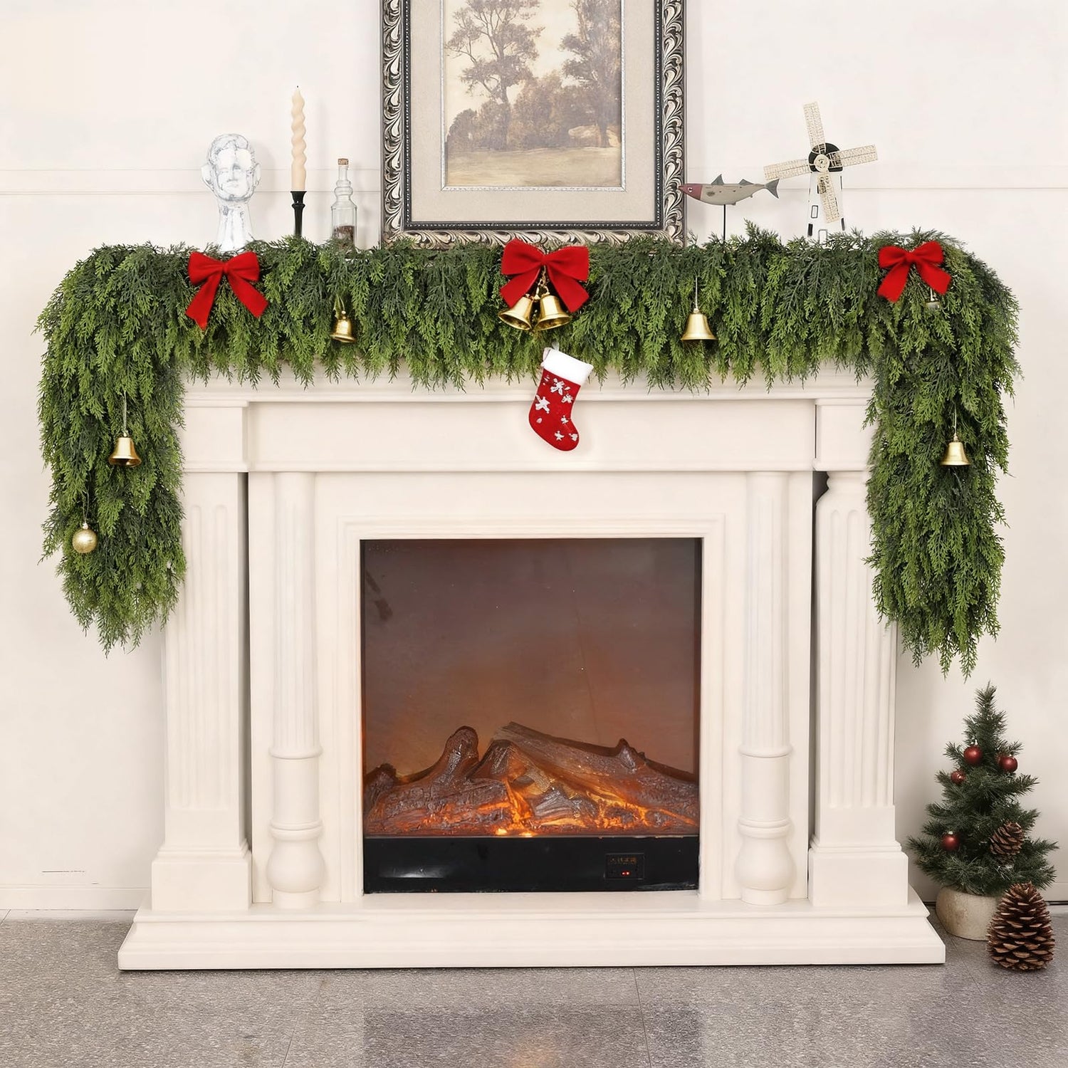 - 【Real Touch Cedar Garland】: Hand crafted with a real touch. The cedar garland is assembled from realistic pine needles, with thick and plump leaves that are lush and green, looking very natural.