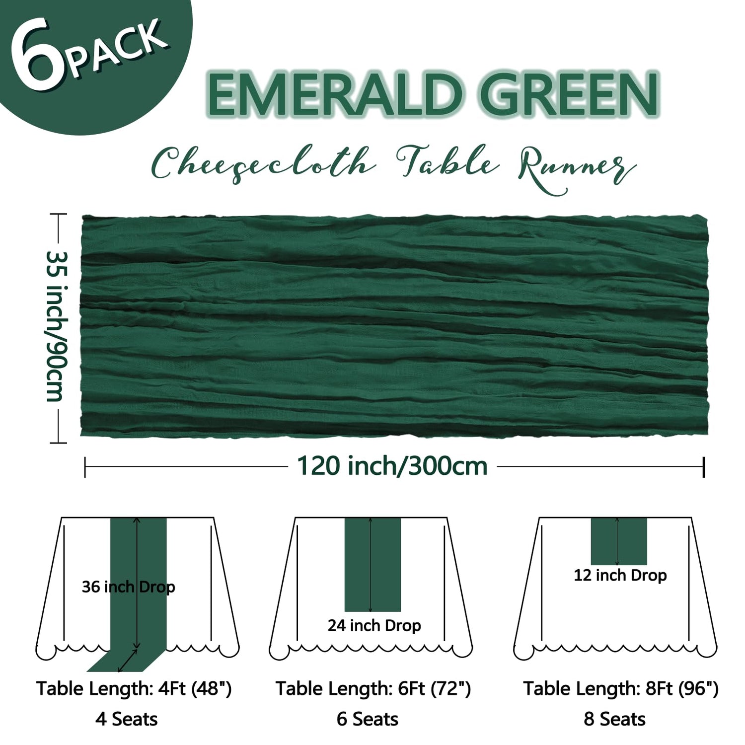 6 Pack Christmas Table Runner Emerald Green Cheesecloth 10Ft Gauze Cheese Cloth Table Runner 35x120 Inch Boho Sheer Rustic Fabric for Party Decor Baby Shower Wedding Home Holiday Decorations