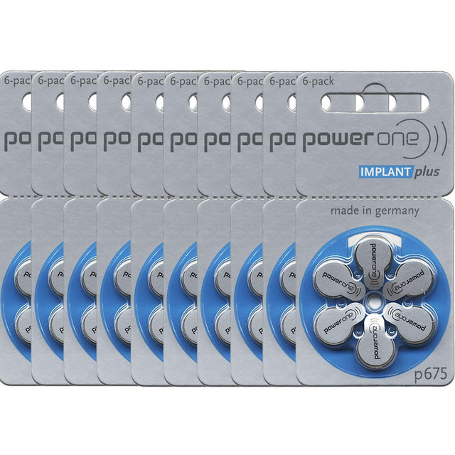 60 Mercury Free Hearing Aid Batteries Size: 675P Cochlear Implant by Power One