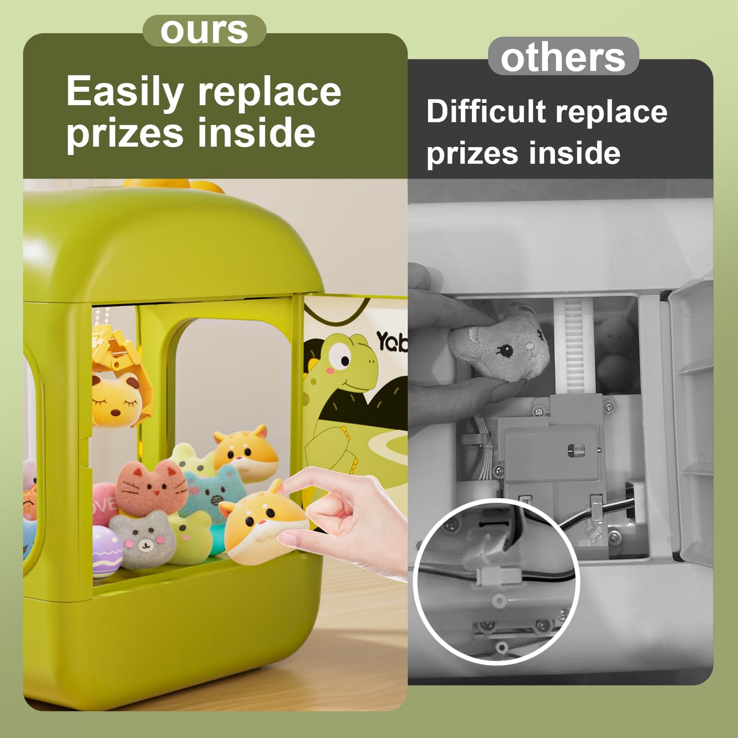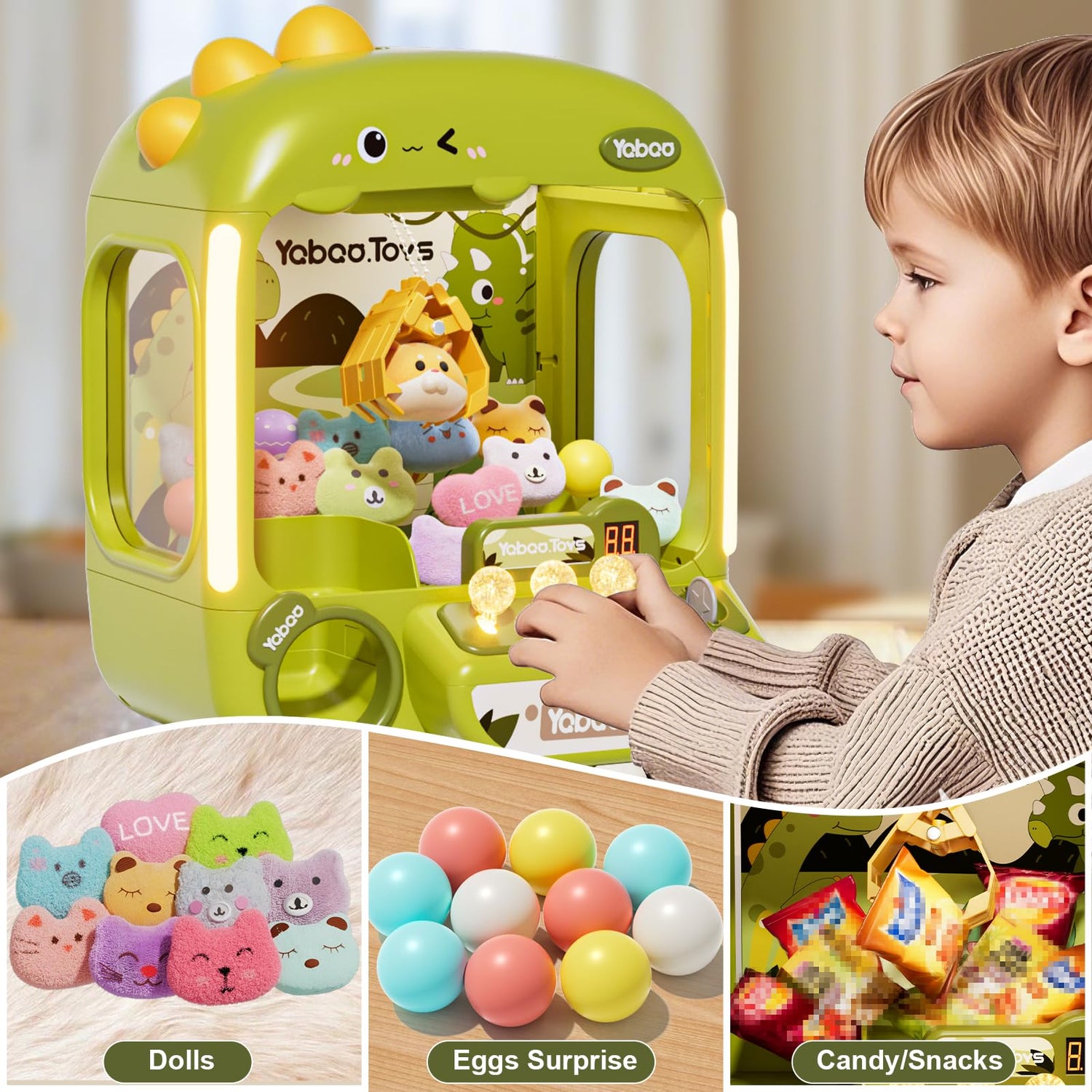 - Ready to Play: Start your claw machine right away, no assembly required! Perfect for home use. Designed with kids in mind, dino claw game machine for kids has a convenient back door for easy prize swapping. Suitable claw machine for kids boys girls ages 3-4 4-6 4-8