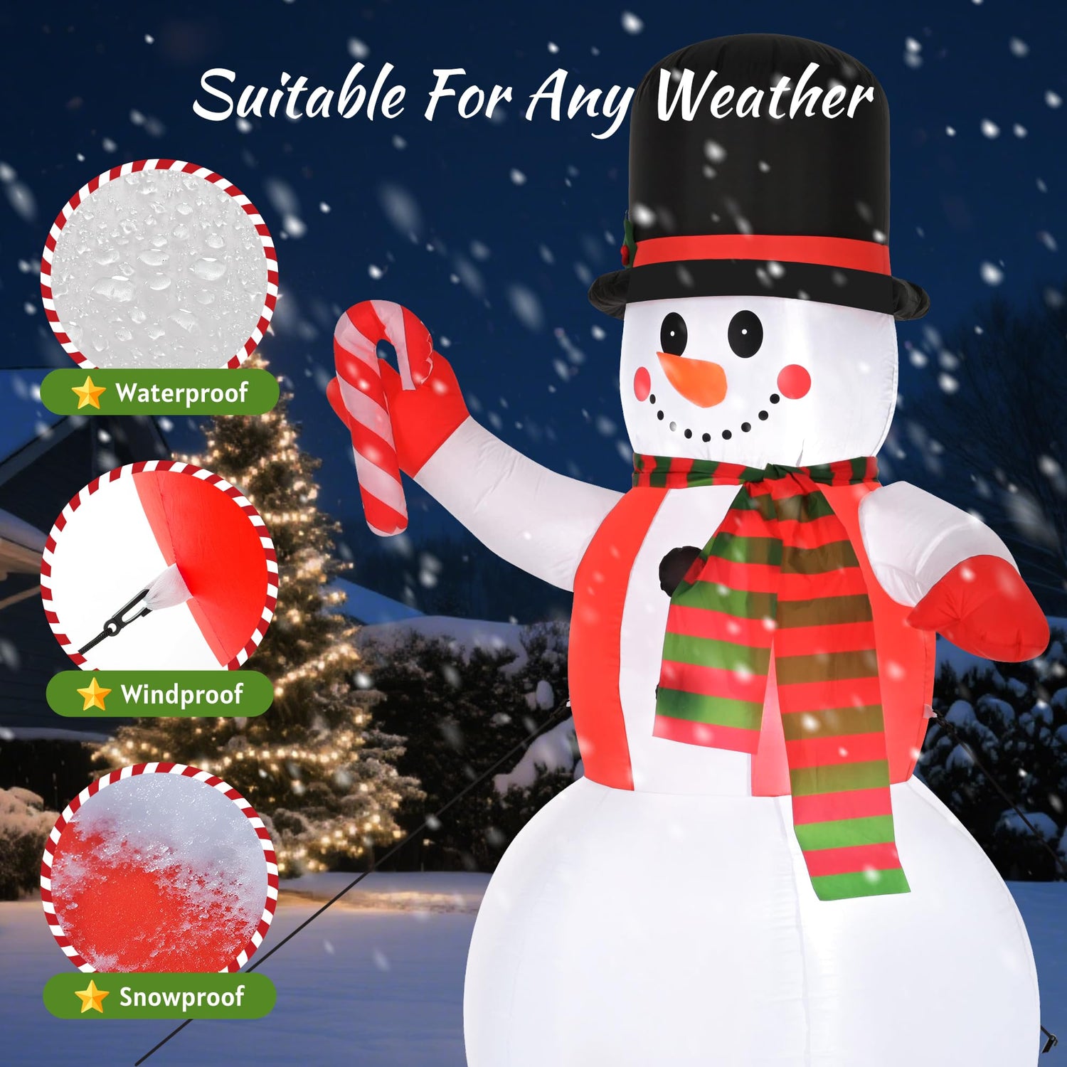 - Sutable for any Weather: Christmas inflatable snowman is crafted from IP44 waterproof 190T high-density thick polyester material—wrinkle-resistant and hard to be pierced by sharp objects. Excellent stitching further boosts its durability, ensuring this outdoor Christmas blow up decor serves you well through the holiday season.