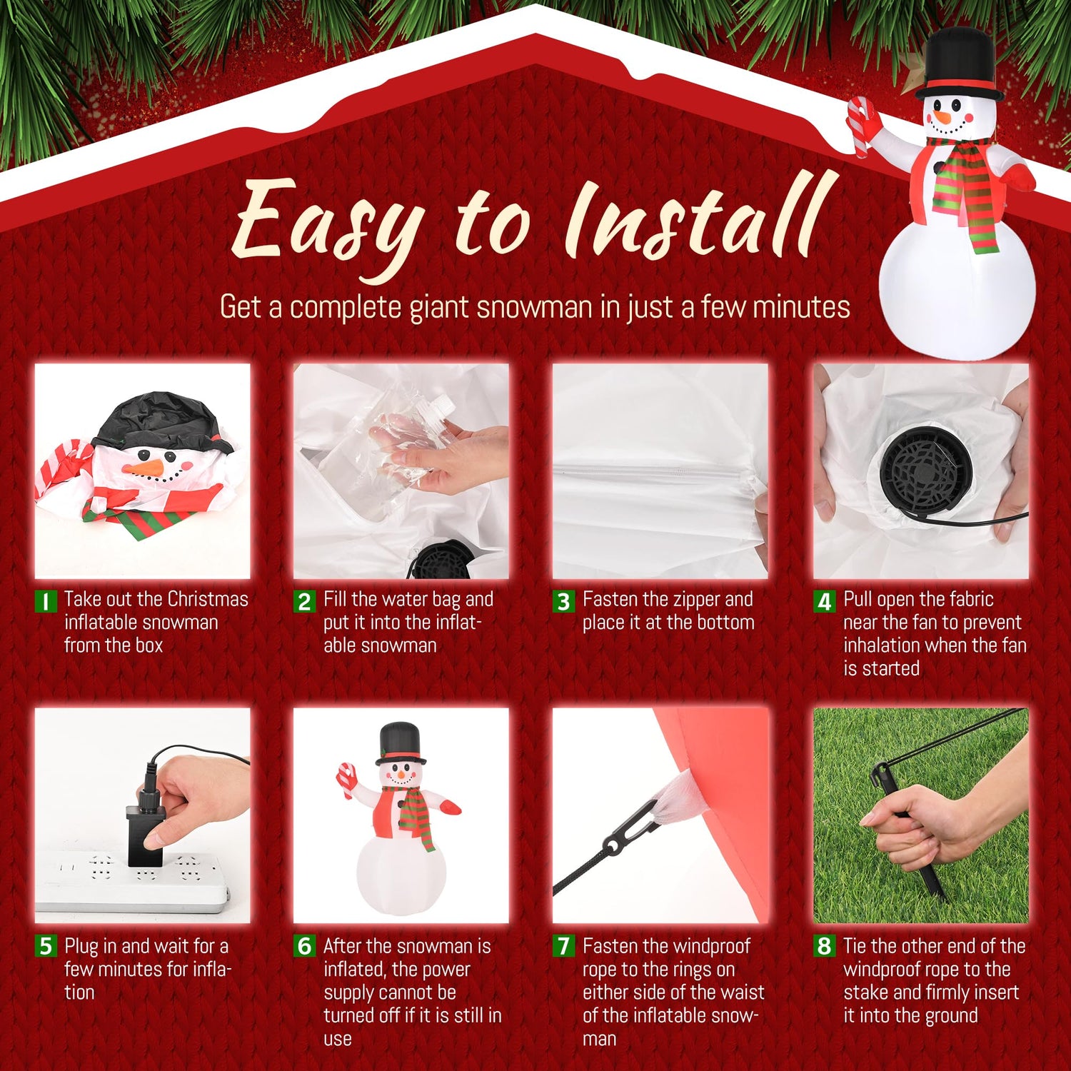 - Easy and Safe to Use: This Christmas inflatable snowman is equipped with a powerful yet quiet blower. Just plug it in, and this outdoor Christmas blow up decor self-inflates in just 1 minute—super convenient for quick festive setup. When the holiday ends, simply unplug the power to deflate it easily.