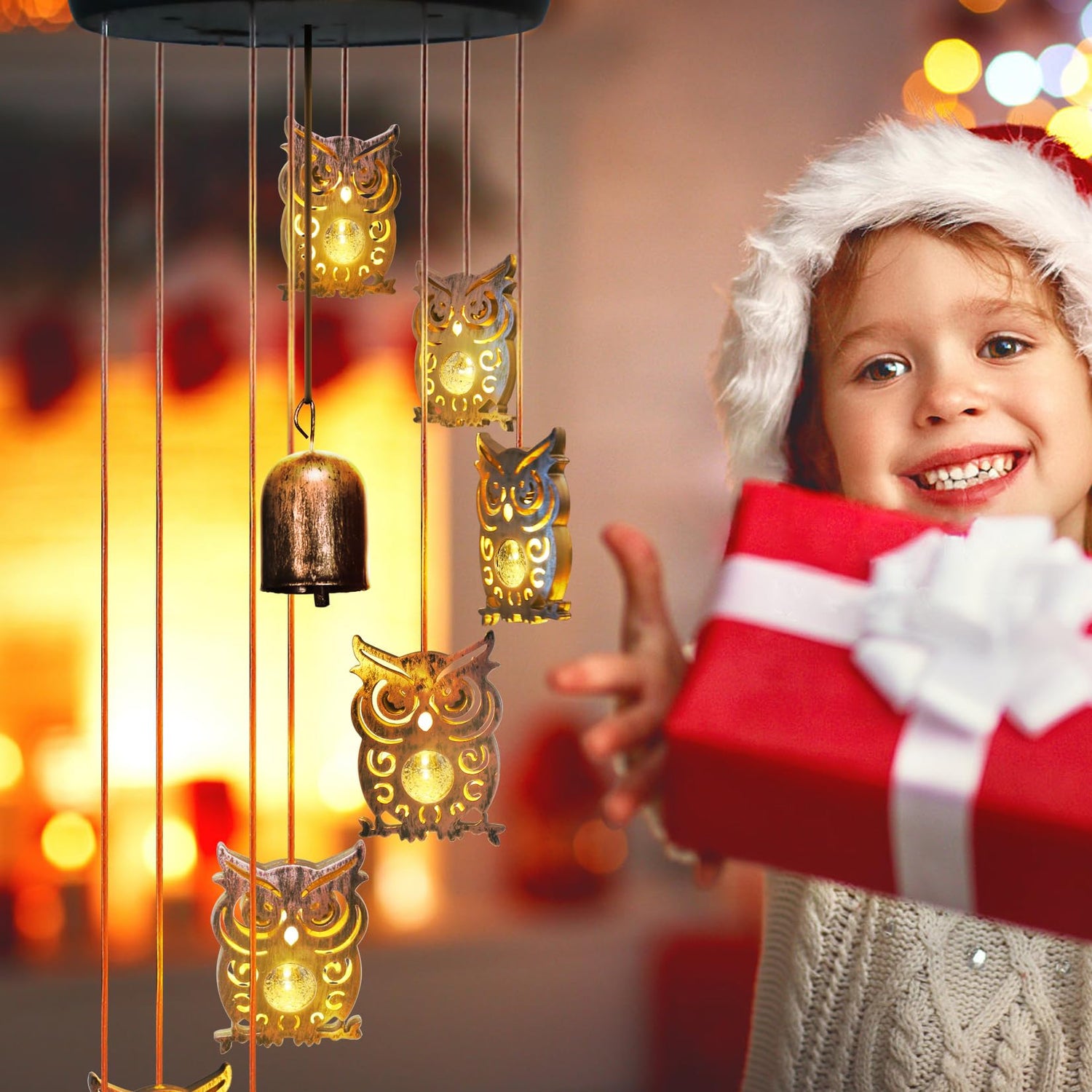 - 🦉Unique owl windchimes -- Gorgeous solar wind chimes owl gifts!This solar owl wind chimes for outside is designed to decor your patio. Outdoor hanging owl wind chimes delicate hollowed-out owl patterns swing in the wind at night, the subtle warm color glow lights up your yard in a special way, and the beautiful visual effects create a romantic atmosphere.Make you and your family happy. Perfect for decorating your yard garden paths, courtyards.