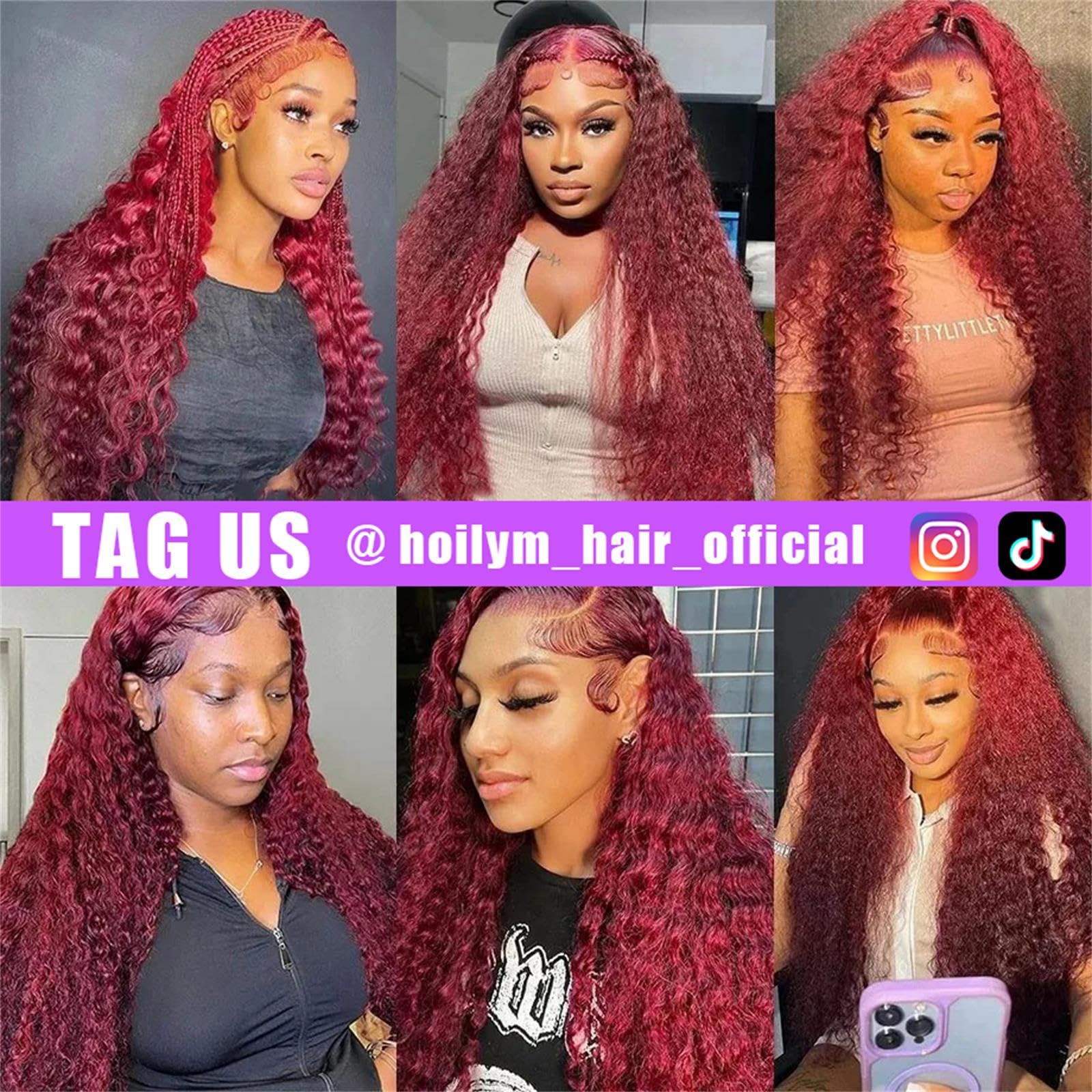 - Burgundy Wig,Real Women Hair : Hoilym’s 99J Burgundy wigs are made from 100% real human hair, offering a vibrant color that synthetic wigs can't match. Our deep wave lace front wigs human hair retain moisture and nutrients, ensuring silky, smooth ends without dryness. You won’t experience tangling like with doll hair—this is our promise!