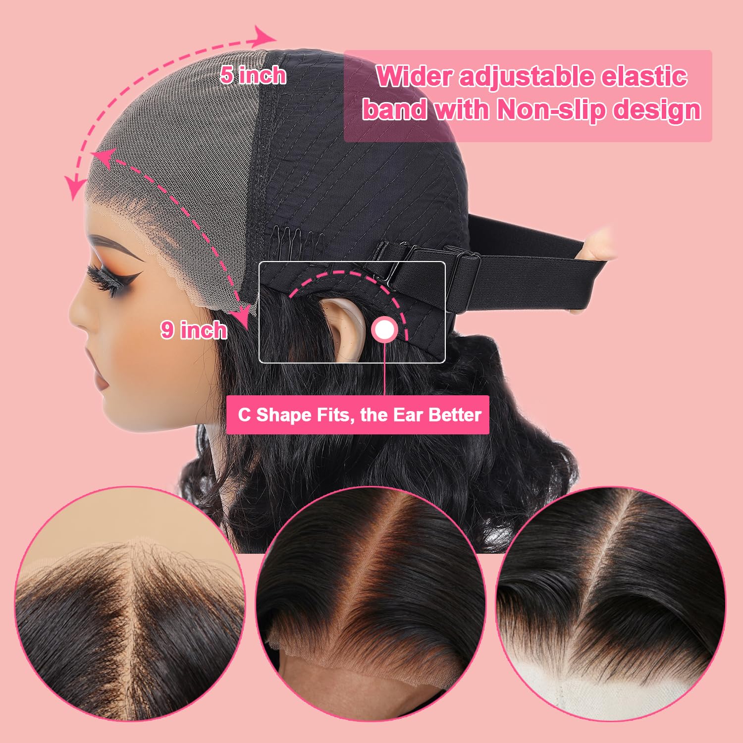 - 3.Easy Wear and Go Glueless Wig Cap: Our Special Designed 3D Dome Cap Is Equipped With An Adjustable Elastic Band That Keeps Your Wig In Place. You Don't Need Any Adhesive Products, Making It Healthy and Perfect for Those with Allergies.