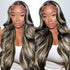 ABALON FB/27 28 Inch Highlight Balayage Lace Front Wig Human Hair 13x4 HD Lace Frontal Wigs Human Hair Body Wave Wig 200% Density Ombre Glueless Wigs Human Hair Pre Plucked with Baby Hair for Women