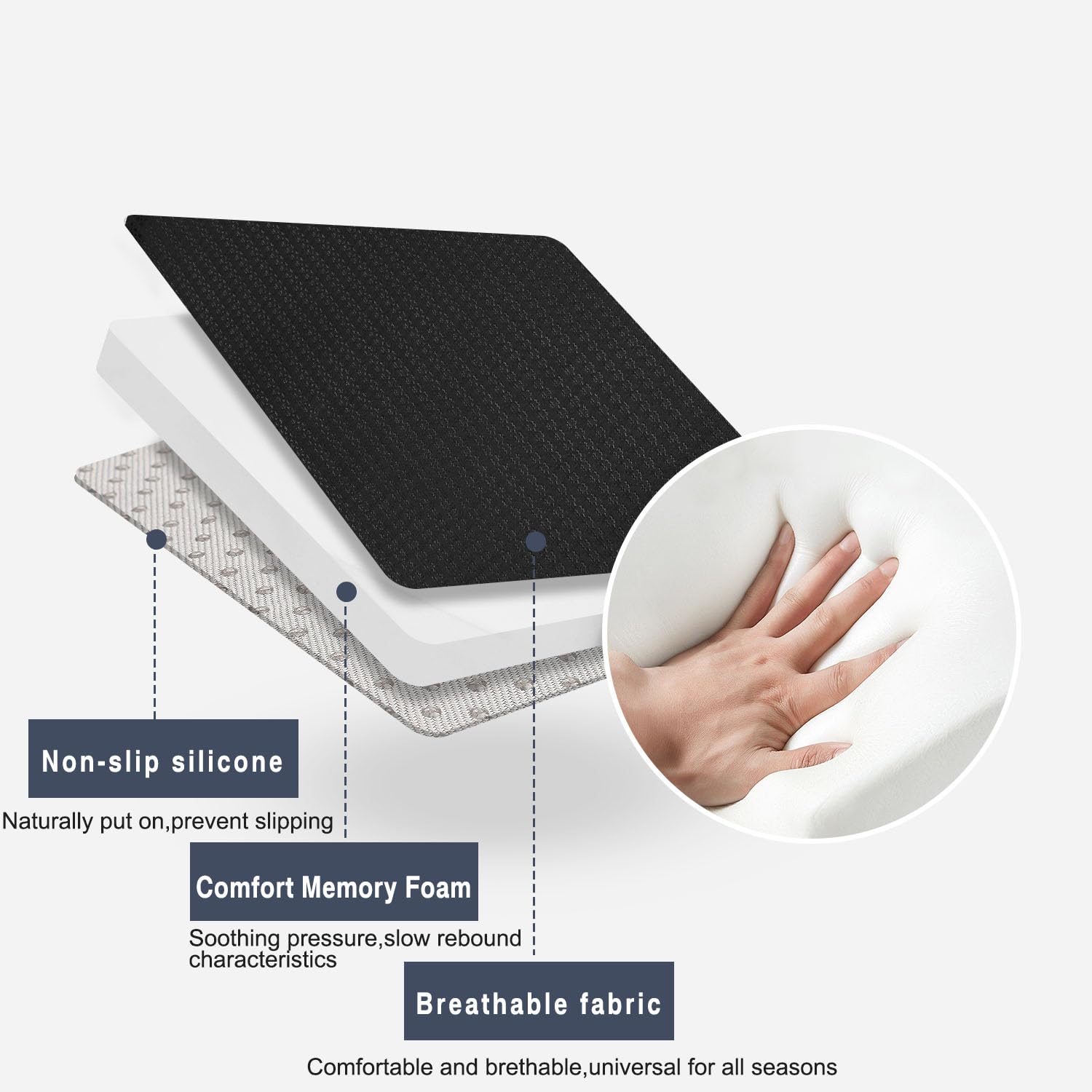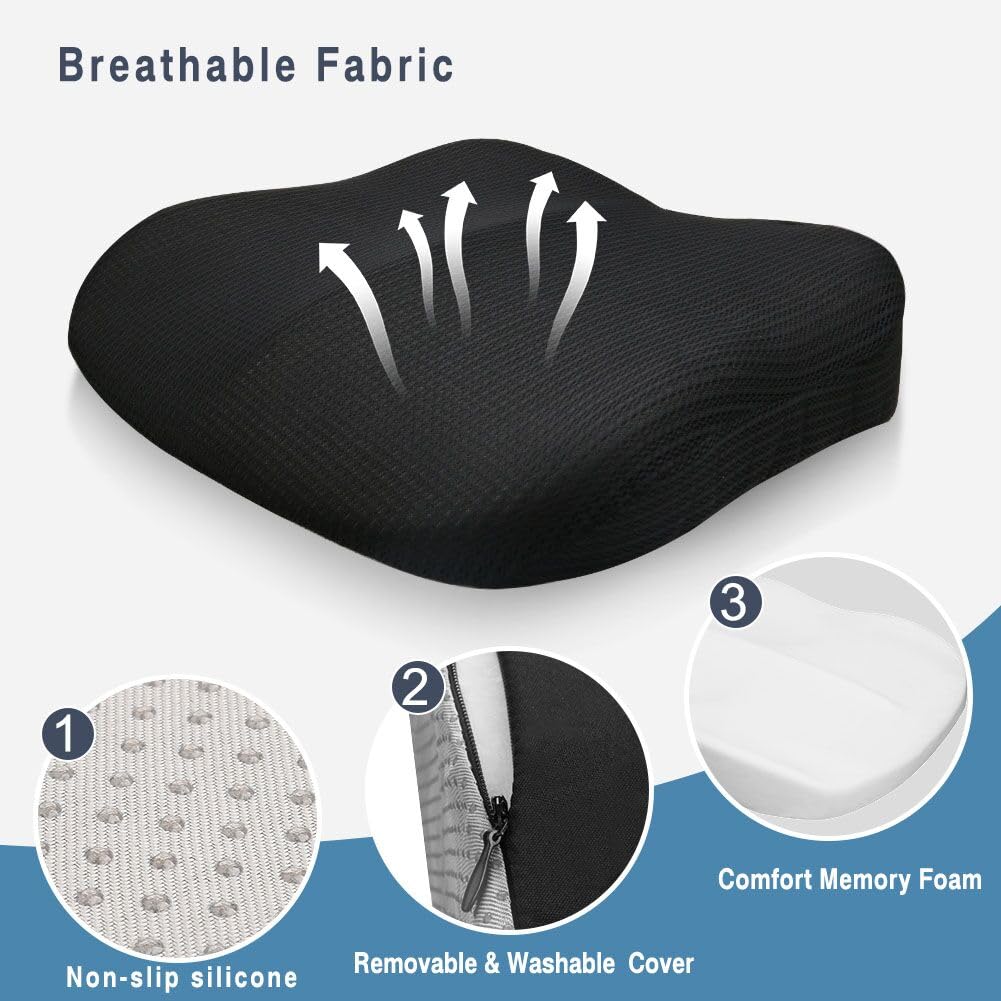 - 【Comfortable Car Seat Cushion】The breathable fabric, polymer memory foam and non-slip silicone gel of this car seat cushion with right thickness help you to reduce the pressure on the coccyx. The Car Seat Cushion adopt mesh material, comfortable and breathable,make you more comfortable when driving.