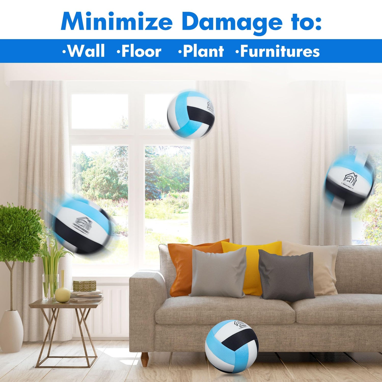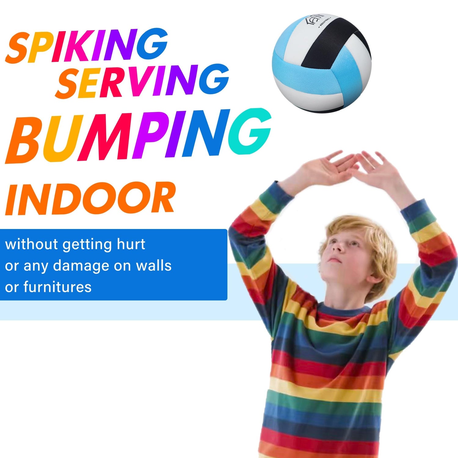 - INNOVATED VOLLEYBALL EVER: AceVernine had gathered many opinions that the wall or floor/furniture always being scratched and scuffed by leather volleyballs, now this INDOOR VOLLEYBALL is a innovation gear you might bought ever for your kids or grand kids! Kids could play the indoor volleyball now inside the house, wall, basement or hallway