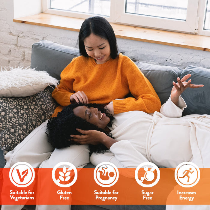 Iron contributes to the reduction of tiredness and fatigue, to normal energy-yielding metabolism, to normal cognitive function, to normal oxygen transport in the body, to normal formation of red blood cells & haemoglobin, and to the normal function of the immune system. Suitable for Pregnancy, Periods, Exercisers & Vegetarians.
