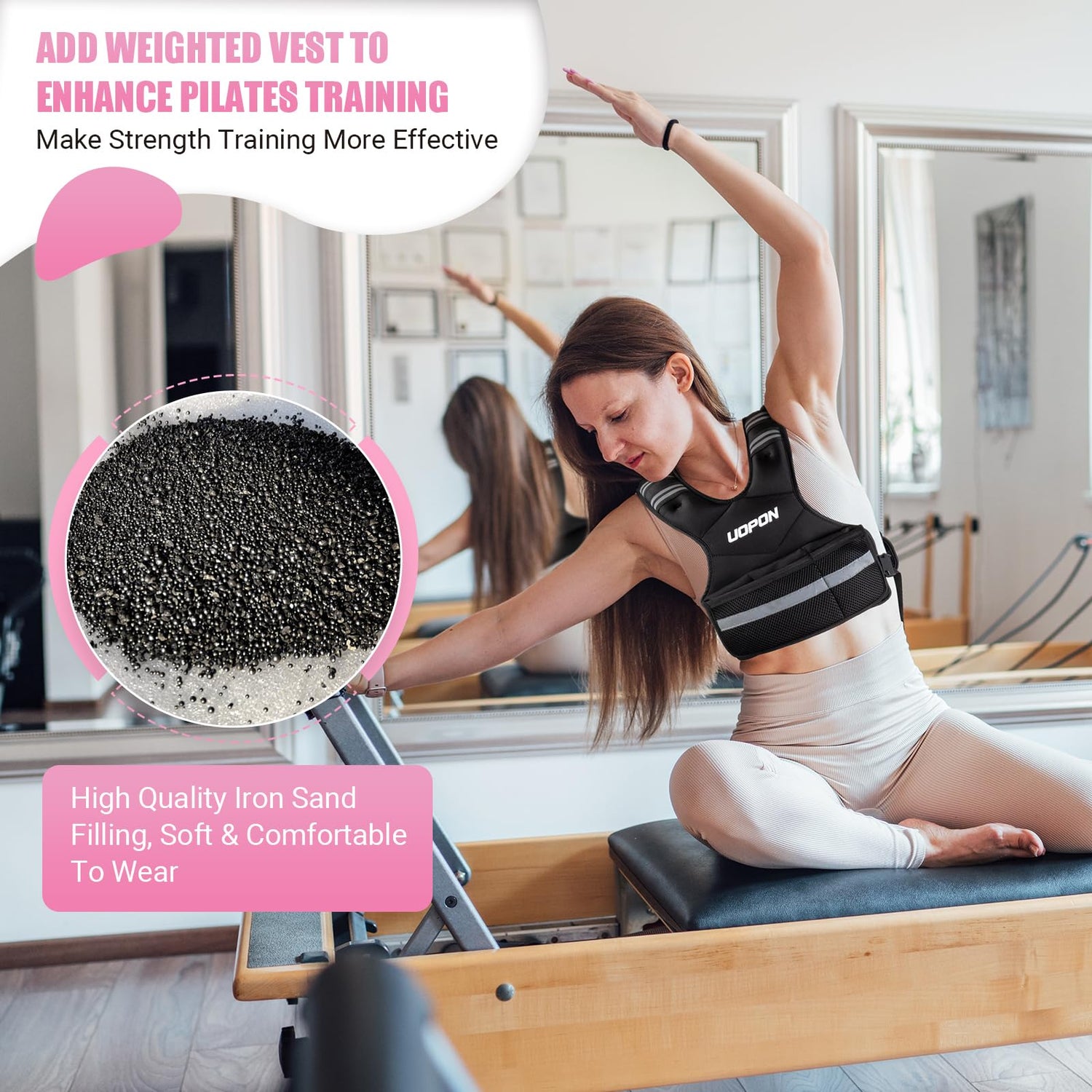 - NEW UPGRADED RUNNING VEST: The adjustable weighted vest for women featuring an X-shaped design tailored to hug the curves of the female body, ensuring a comfortable fit. Weighted vest With enlarged mesh pockets, easily store large-sized phones during workouts, while separate compartments hold your essentials like credit cards, keys, and tissues. Enhanced with high-visibility reflective strips on the front, shoulders, and back, ensuring you are easily seen for added safety during training.
