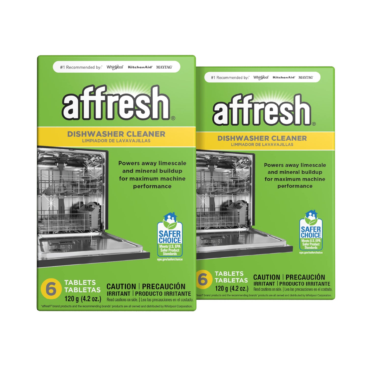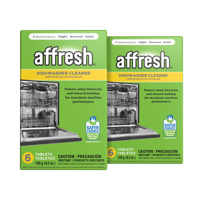 Details: Affresh® dishwasher cleaner cleans even where you can’t see to help remove odor-causing residues and buildup that can form in machines over time. Specially formulated to power away limescale and mineral buildup, affresh® dishwasher cleaner is an easy and effective way to clean deep inside your machine while your detergent cleans your dishes* (*check manufacturer's suggested cleaning instructions on all dishwasher-safe items). #1 Recommended by* Whirlpool, KitchenAid, Maytag and Amana brands, affresh® dishwasher cleaner tablets are septic-tank safe, compatible with all machine makes and models, and made with U.S. EPA Safer Choice-certified ingredients. Use monthly or as needed to maximize machine performance and leave your dishes and glassware sparkling* (*heavily soiled machines may require extra cleaning cycles). *Affresh brand product and the recommending brands' products are all owned and distributed by Whirlpool Corporation