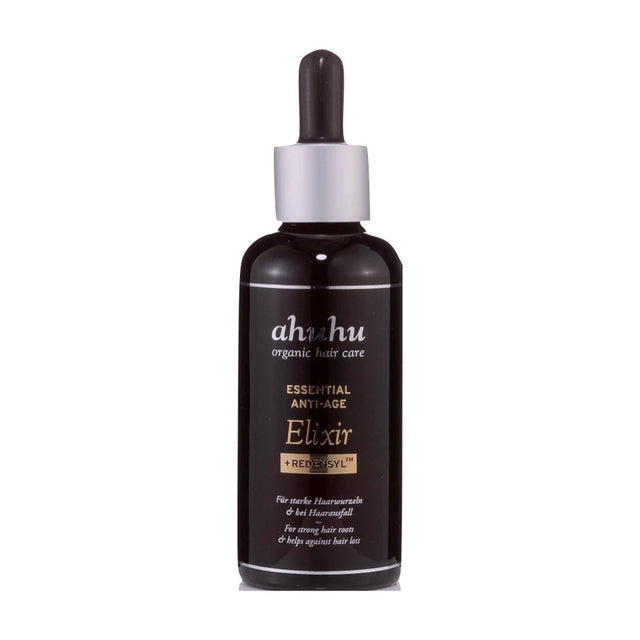 ahuhu Essential Anti-Age Elixir is an oil-free elixir for hair roots, the scalp and hair itself. It is enriched with effective ingredients such as Redensyl, caffeine and organic pea sprout extract for a balanced scalp. While panthenol, aloe vera and ahuhu round off the lavish care formula.