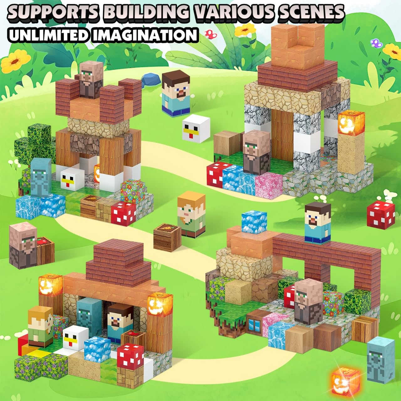 - Countless Possibilities: 120 PCS magnetic building toys sets feature a variety of patterns for kids ages 3+, 2 pumpkin blocks that light up to spark their curiosity, imagination and encouraging exploration. They offer endless creative possibilities in themed assembly. Block Size: 1x1x1 inch
