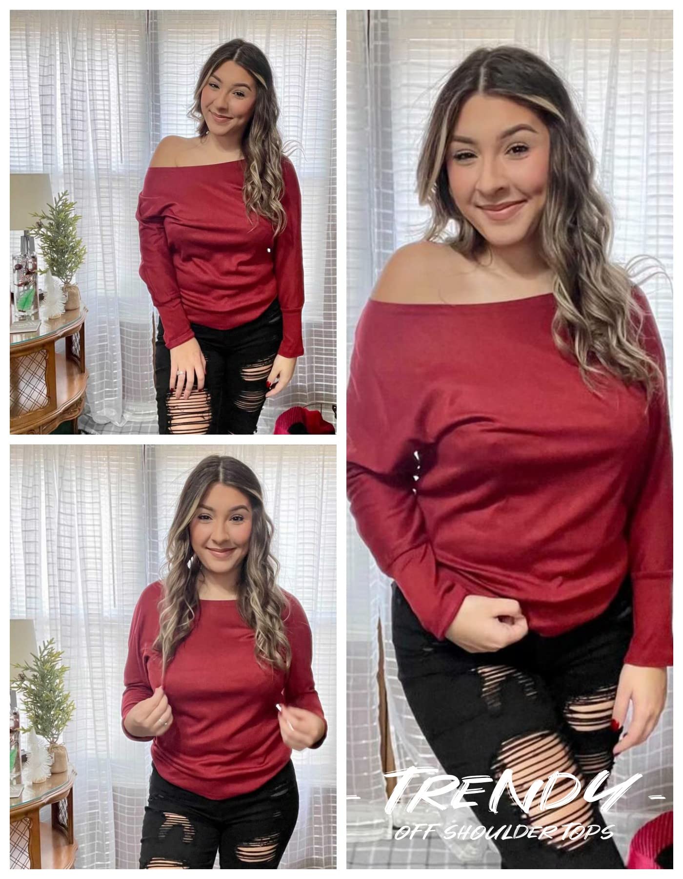 Aifer Ladies Sweaters, Off The Shoulder Sweater Top, Oversized Red Christmas Sweater, Sexy Long Batwing Wine Red Trendy Pullover Sweatshirts 2025