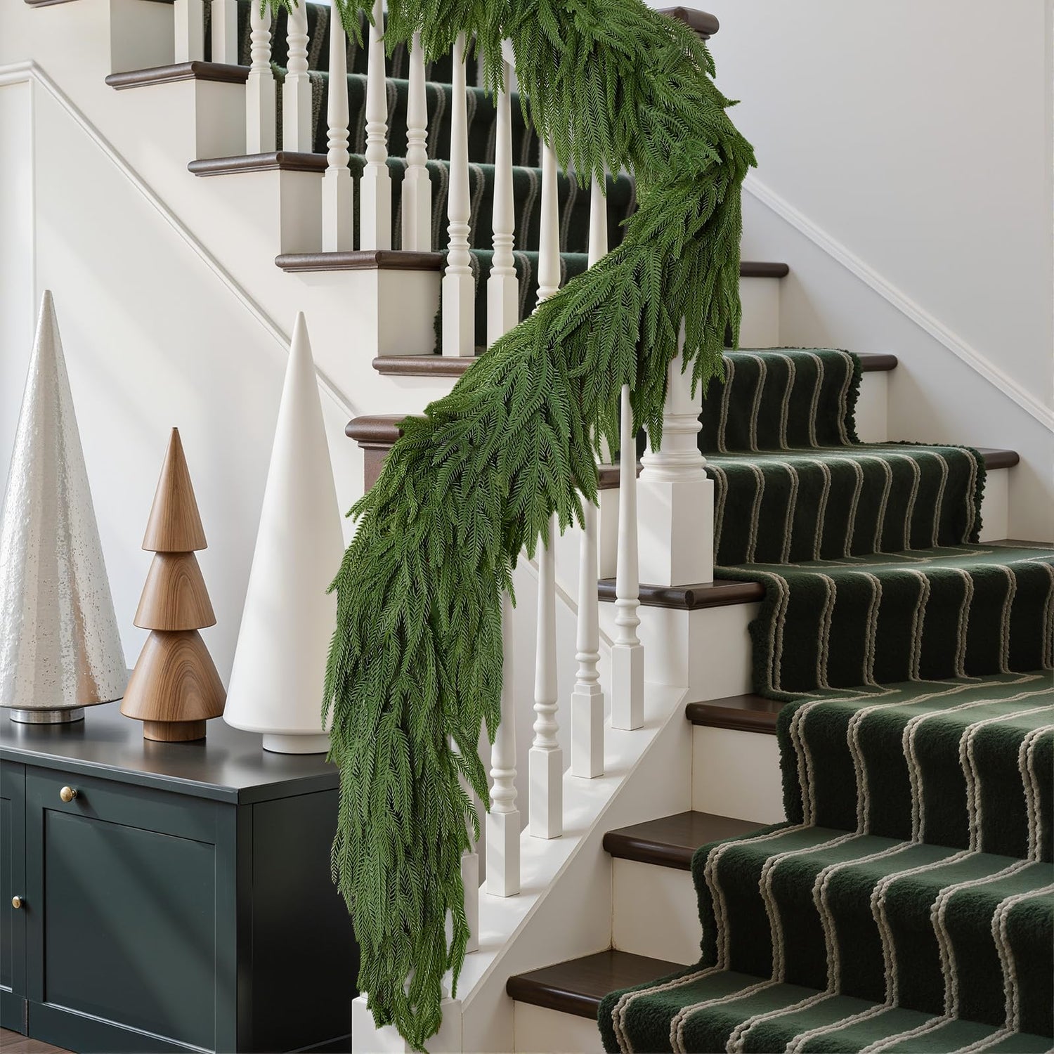 - šćFestive AtmospherećCreate a festive feel with our artificial Christmas garlands; the natural green complements traditional Christmas decorations, creating a warm and cozy atmosphere in your home. This is a primary holiday decoration that truly transforms your home into a picturesque Christmas scene.