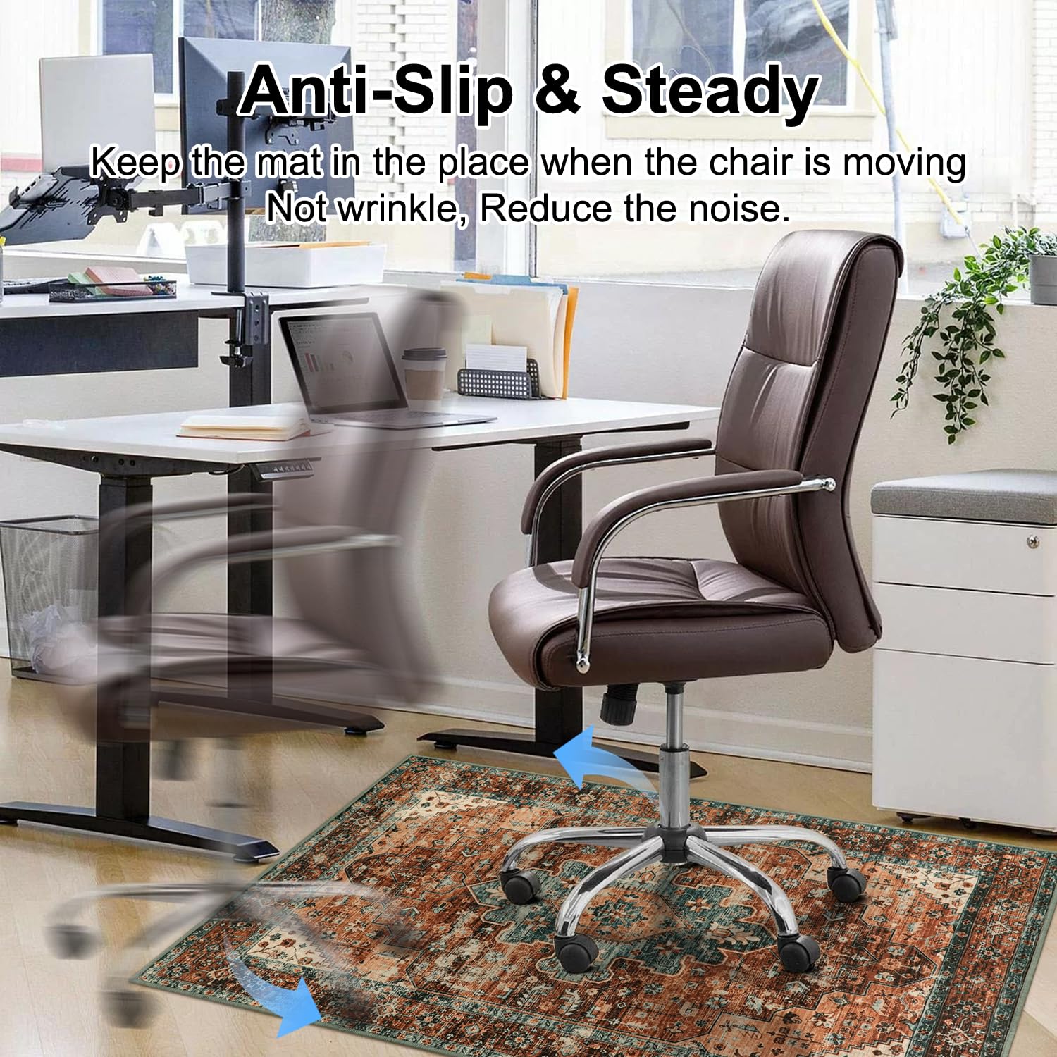 - Anti-Slip & Easy to Roll: The textured surface of the office rug is designed to allow your office chair casters to move easily while performing everyday tasks, yet has enough grip to maintain a controlled roll so the chair doesn't slip. When you sit at the desk barefoot, the mat's soft surfaces keep the cold away from your toes