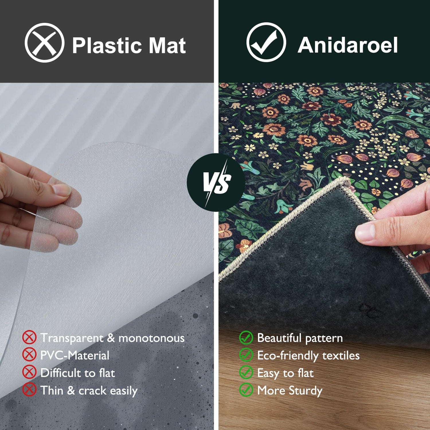 Anidaroel Floral Office Chair Mat for Hardwood & Tile Floor, 48"x60" Desk Chair Mat for Home Office, Under Desk Rug for Rolling Chair, Non Slip Computer Chair Mats, Low-Pile Carpet Protector Rug