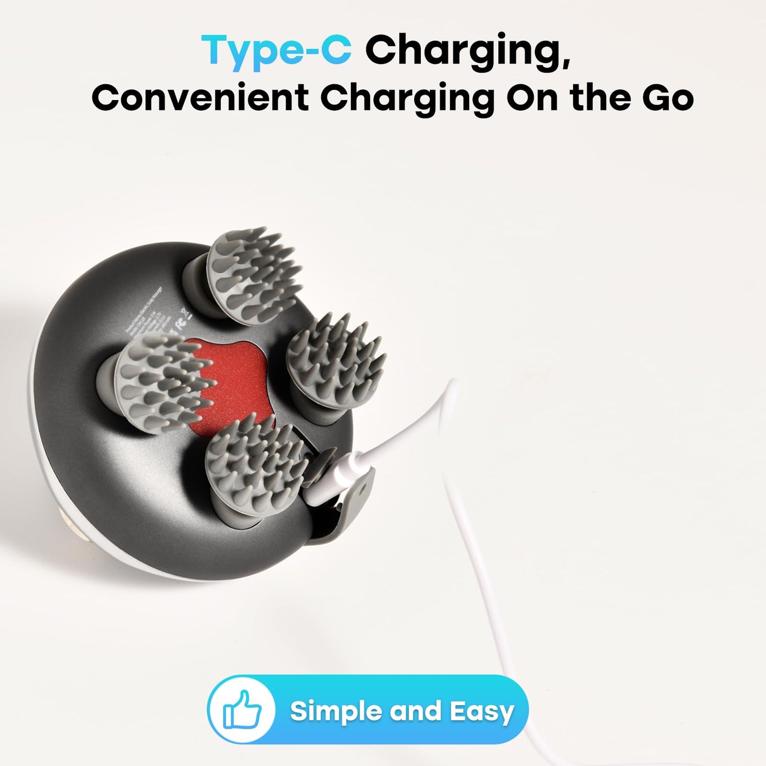 arboleaf Scalp Massager Rechargeable Head Massager Scalp Stress Relax, Waterproof Handheld Hair Scratcher with 8 Removable Massage Claws, Gift