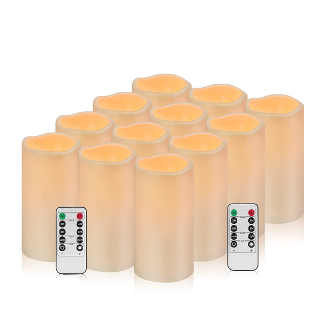 - Value Package Include: 12 x large outdoor flameless candles (6” in height and 3” in diameter), 2x 10-key remote control, and a user manual. If you have any questions, please contact us, we will always be here and reply within 6 hours.
