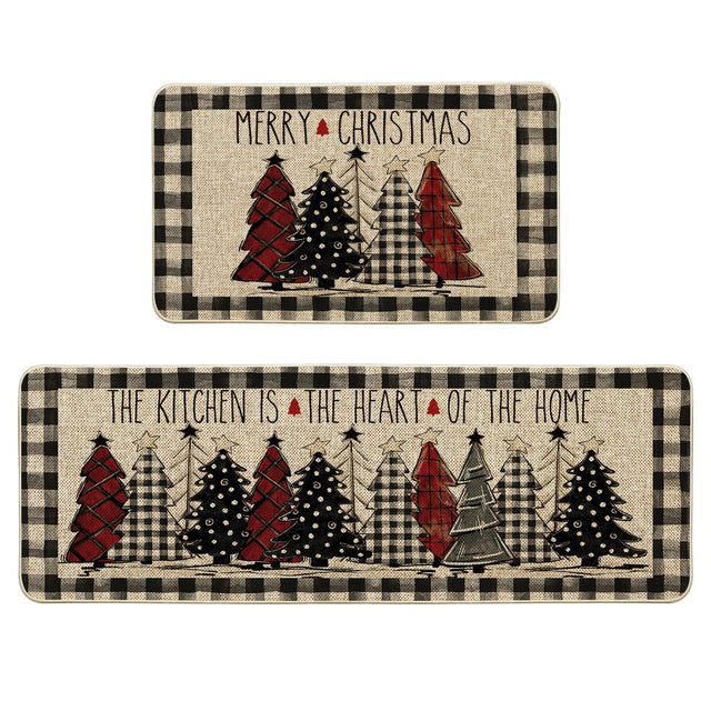 Artoid Mode Buffalo Plaid Xmas Tree Merry Christmas Kitchen Mats Set of 2, Winter Home Decor Low-Profile Kitchen Rugs for Floor - 17x29 and 17x47 Inch