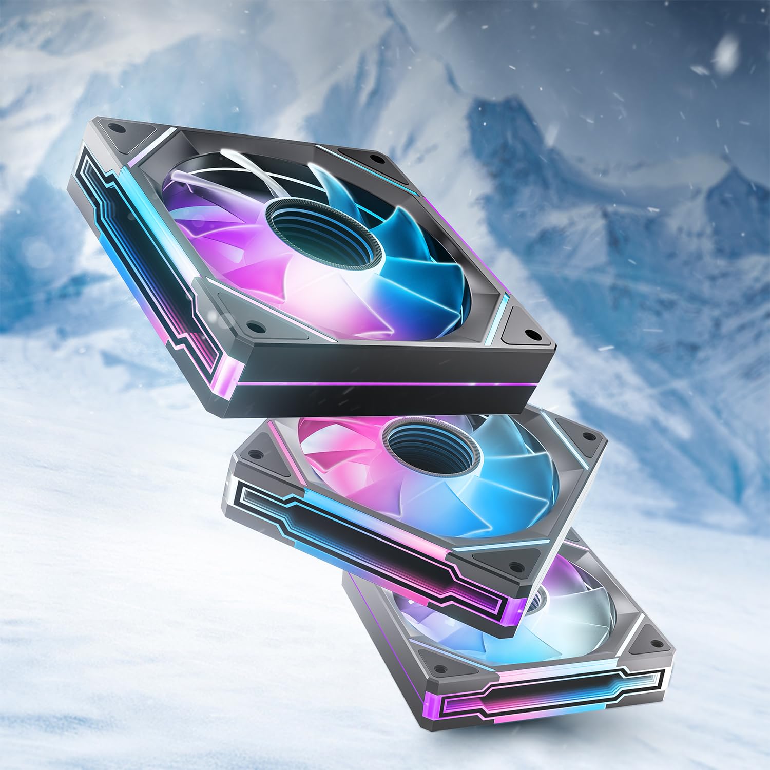 - 【Infinity Mirror & ARGB Sync】: Our ARGB fan boasts infinity mirrors; each fan has 24 LED beads for 16.8M colors, & supports color, temp, & brightness adjustments. Fully compatible with Asus Aura Sync, Gigabyte RGB Fusion, MSI Mystic Light Sync, etc., for easy system-wide lighting sync. Ideal for unique workstations & gaming setups, offering visual appeal & high-performance