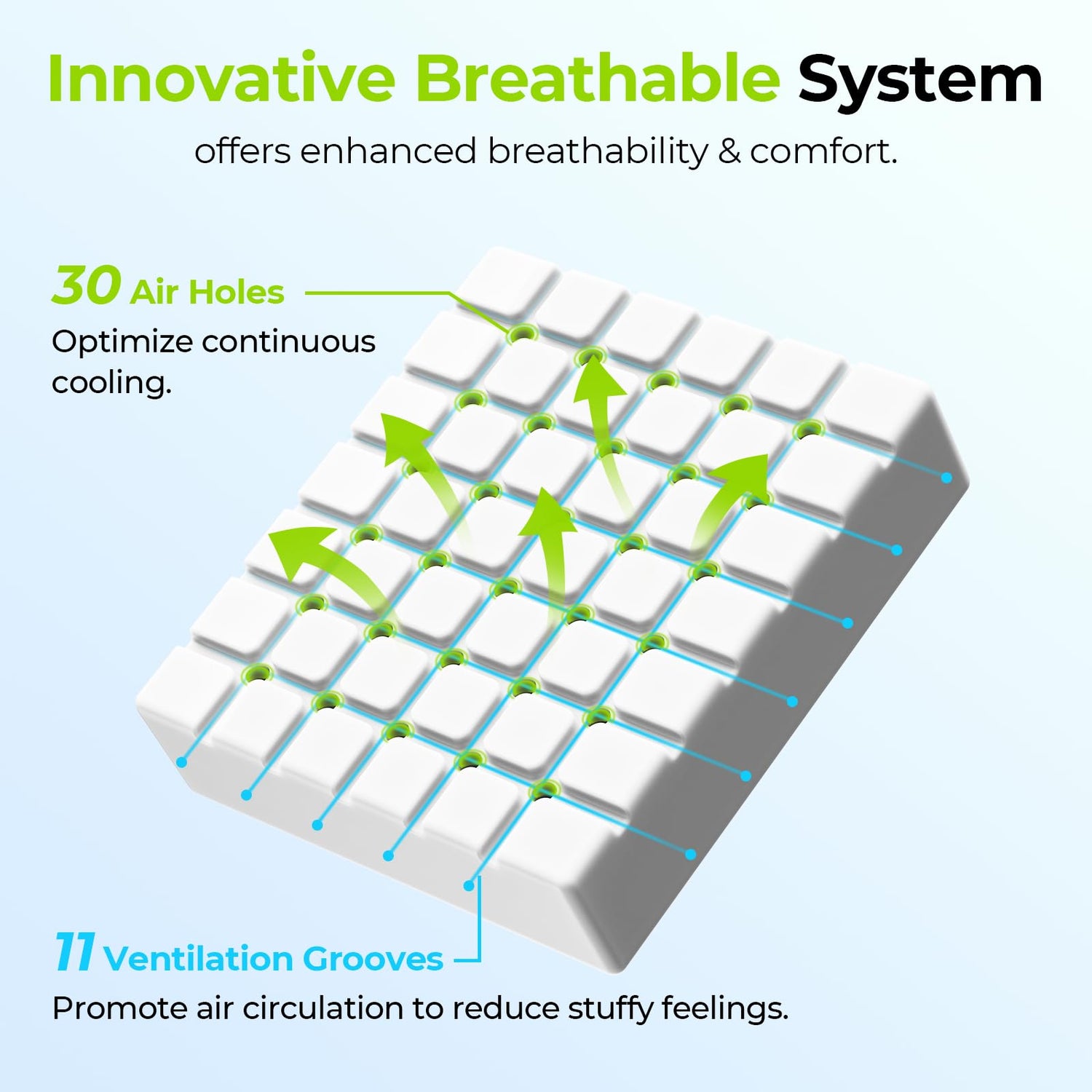 - Innovative Ventilation Seat Cushion: This wheelchair seat cushion is designed to provide innovative comfort through a heat dissipation system consisting of 30 air holes and 11 ventilated grooves. Even if you have to sit for a long time, this cushion can help prevent stuffiness and reduce the risk of bedsores