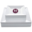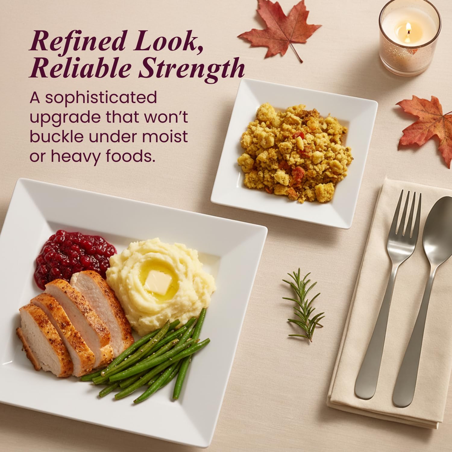 Aya's 60ct White Square Disposable Plates - Heavy Duty Plastic Party Plates for Christmas, Thanksgiving (30 Dinner & 30 Salad)