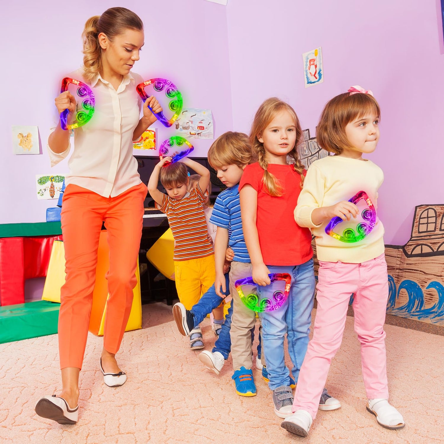 - WIDELY USED - Light-up tambourines are perfect for parties, Halloween, Christmas, concerts, weddings, birthdays, clubs, sporting events, nightlife, raves, festivals, bachelor parties, and any other nighttime event. They're definitely great party toys for adults and kids. If you use these noisy toys at glow-in-the-dark parties, you will be a shining presence in the crowd, making them perfect easter basket stuffers gifts and easter toys.