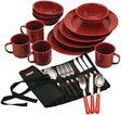 Coleman 24-Piece Enamel Dinnerware Set for Outdoor Dining, Dishwasher Safe, Full Dinnerware & Flatware Set for 4 People
