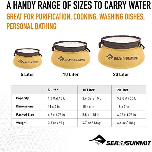 - 20-liter (5.2-gallon) sink measures 18 x 14 x 7 inches, packs to 6.25 x 1.75 inches, and weighs 6.6 ounces; PVC- and BPA-free
