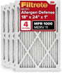 Filtrete 18x24x1 AC Furnace Air Filter, MERV 11, MPR 1000, Micro Allergen Defense, 3-Month Pleated 1-Inch Electrostatic Air Cleaning Filter, 4 Pack (Actual Size 17.81x23.81x0.81 in)
