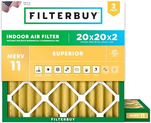 Filterbuy 20x20x2 Air Filter MERV 11 Allergen Defense (2-Pack), Pleated HVAC AC Furnace Air Filters Replacement (Actual Size: 19.50 x 19.50 x 1.75 Inches)