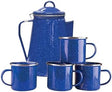 - Beautiful enamel percolator with sturdy pour handle and cool touch bail