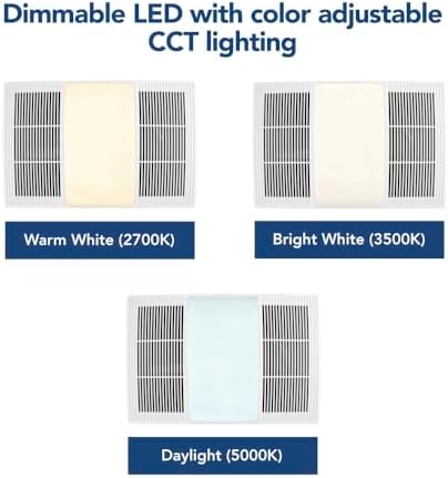 - HIGH-QUALITY BATH FAN, LIGHT, AND HEATER COMBO: Exhaust Fan, light, and heater function independently or together to provide superior comfort in your bathroom at 110 CFM and 2 sones. The 110 CFM bathroom exhaust fan will remove excess moisture and humidity while keeping the room warm and comfortable while in use.