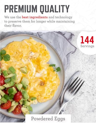 - POWDERED EGGS PERFECTION: Our emergency-food survival kit is your lifeline, complete with premium powdered freeze-dried eggs. These eggs are a valuable addition to your dehydrated-food supply, offering genuine flavor and nutritional excellence.