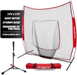 - RED 7 x 7 FT NET & DELUXE TEE: The deluxe practice net comes with an adjustable instant baseball tee and a portable 7ft x 7ft (49 SqFt) net with a heavy-duty storage bag