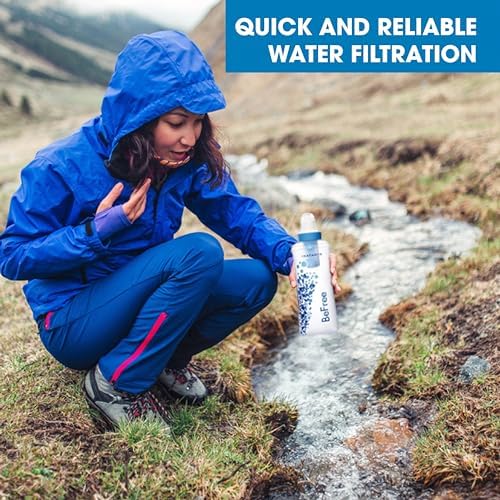 - Efficient and Durable: Filters up to 1,000 liters (up to 2 liters/min) of contaminated water without chemicals, featuring free flow channels for quick hydration.