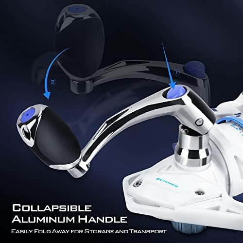 - Two Color Options - KastKing Centron Spinning Reel in black-blue offers the best value at any level. The KastKing Centron Lite Fishing Reel in white-blue that there is a Collapsible Handle turns any angler into a PRO. Sizes 500 & 1000 are Perfect for Ice Fishing.