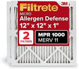 Filtrete 12x12x1 AC Furnace Air Filter, MERV 11, MPR 1000, Micro Allergen Defense, 3-Month Pleated 1-Inch Electrostatic Air Cleaning Filter, 2 Pack (Actual Size 11.81 x 11.81 x 0.81 in)