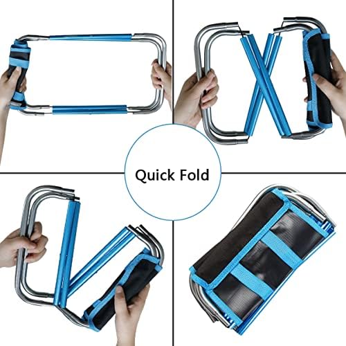 - 【SMALL SIZE & SAVE SPACE】Portable Camping Stool Unfold Size: 8.3" x 9.5" x 10.6"; Fold Size: 9.5"L x 4.7"W, which can save much space.Manual measurement, allow 1-2cm error. It is a small portable stool only. supports up to 130 lbs.Please read the size carefully before purchase