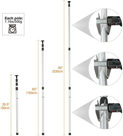 - Adjustable and Lightweight: Our camping tarp poles offer a large adjustment range from 35.43in to 90.55in with 3 sections. Each pole weighs only 1.1lbs. They can be taken anywhere you want.