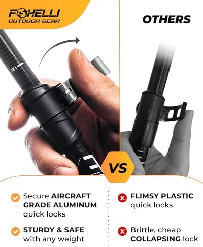 Foxelli Trekking Poles – Lightweight Collapsible Aircraft Grade Aluminum Hiking Poles with Cork Grips Quick Locks & All-Terrain Accessories – Pair of 2 is backordered and will ship as soon as it is back in stock.