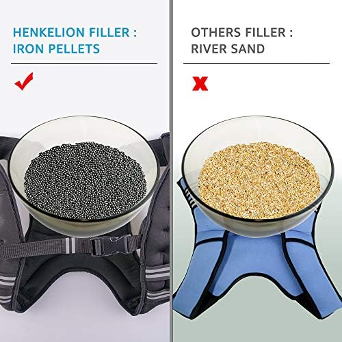 - IRON PELLETS & METAL ROCK - Henkelion weighted vest is filled with premium iron pellets and metal rock rather than using cheap river sand