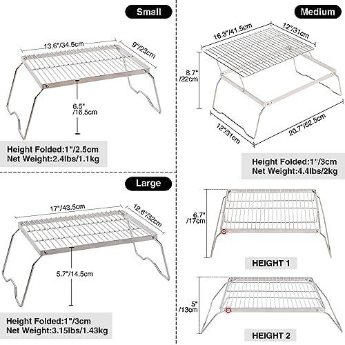- HIGH QUALITY MATERIAL: The over-the-fire camping grill is made of 304 stainless steel grate and the legs are made of 201 stainless steel. This helps the grill resist oxidation and corrosion. Stainless steel also makes it lighter and more durable than iron.