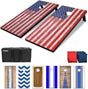 - AMERICAN FLAG DESIGN: Join the classic fun of cornhole with this unique set featuring printed rustic American Flag graphics; The Stars and Stripes design is also perfect for display when not in use