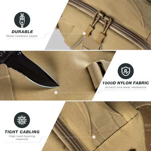 - 【Innovative Storage Design】The front MOLLE webs of fishing backpack are designed to free your hands as they could easily hold pliers, clippers, hooks and etc. The clip buckle in the middle are convenient to hold your jacket and hat in preparation for weather change. Two rod bets on the side and the bottom patched belt are designed for fishing rod storage.