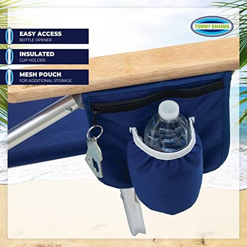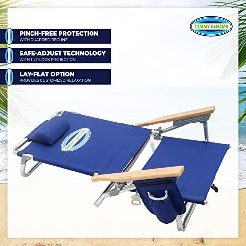 Tommy Bahama 5-Position Classic Lay Flat Folding Backpack Beach Chair, Polyester, Navy